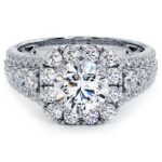 Cushion Halo With Round Center Diamond Vintage Style Diamond Engagement Ring Setting (1.45ctw) in 18k White Gold