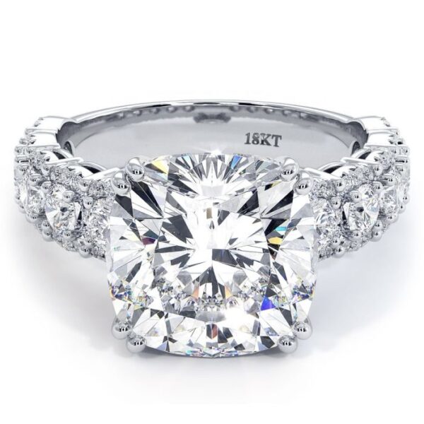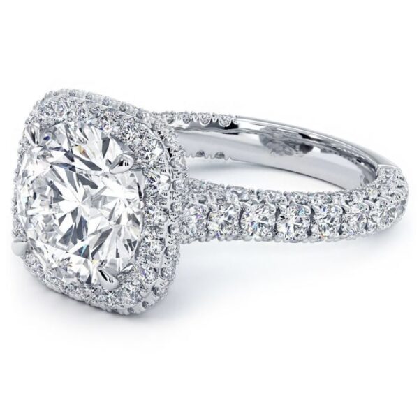 Cushion Halo With Round Center 3 Sided Micropavé Shank Diamond Engagement Ring Setting (2.75ctw) in 18k White Gold