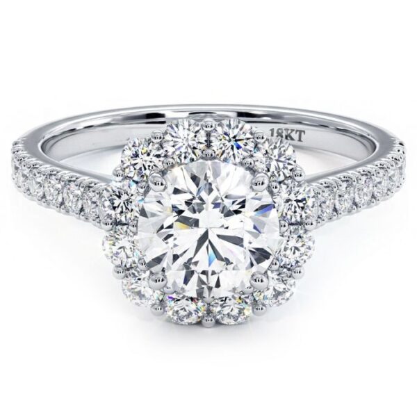Round Halo, Floral Shape, Cathedral Diamond Shank, Diamonds On The Bridge, Engagement Ring Setting (1.01ctw) in 18k White Gold