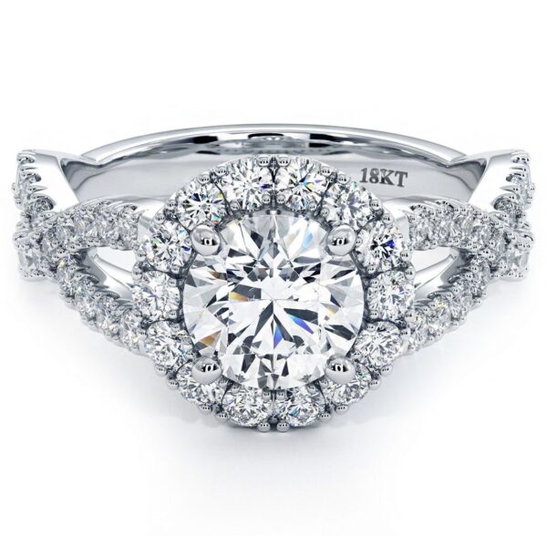 Round Brilliant Infinity Twist Round Halo Micropavé Diamond Engagement Ring Setting (0.77ctw) in 18k White Gold
