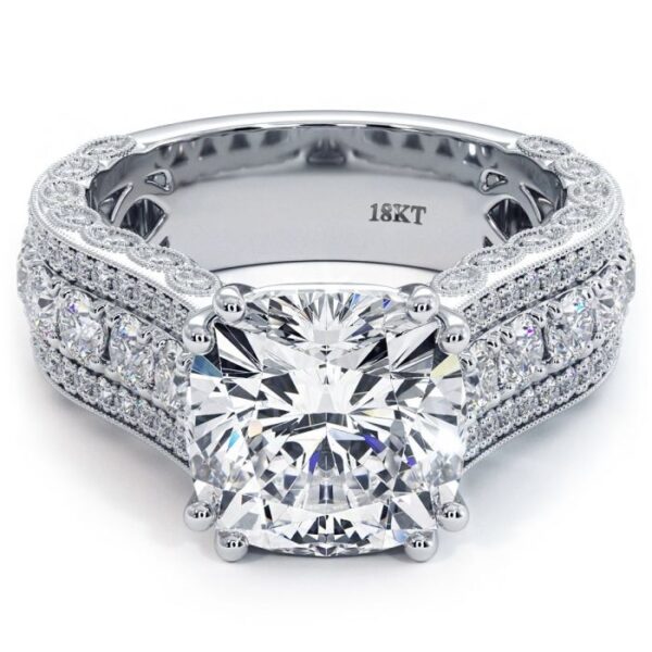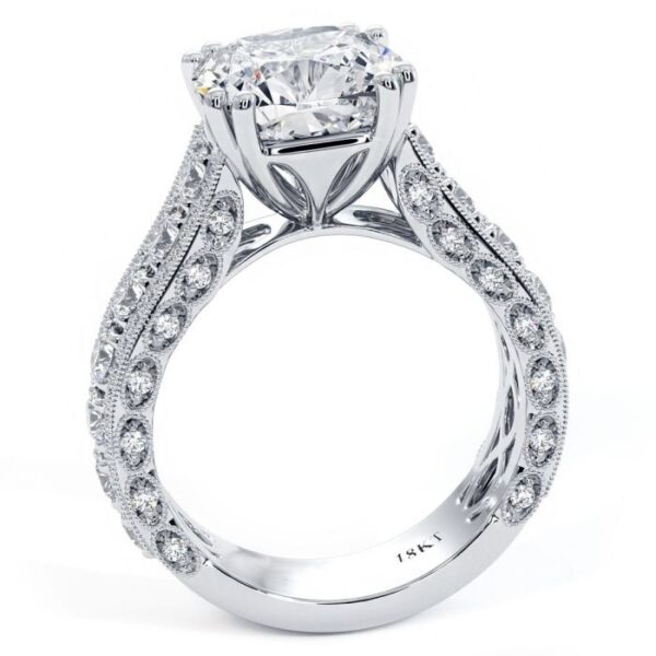 Cushion Cut Vintage Style Milgrain Diamond Engagement Ring Setting (2.05ctw) in 18k White Gold