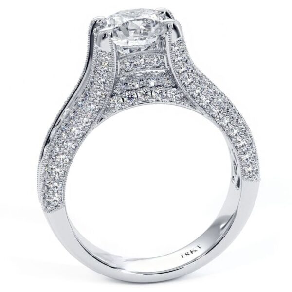 Round Brilliant Micropavé Split Shank High Cathedral Diamond Engagement Ring Setting (1.43ctw) in 18k White Gold
