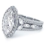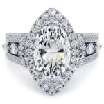 Marquise Halo Micropavé Vintage Style Milgrain Diamond Engagement Ring Setting (1.60ctw) in 18k White Gold