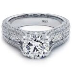Round Brilliant Micropavé Split Shank High Cathedral Diamond Engagement Ring Setting (1.43ctw) in 18k White Gold